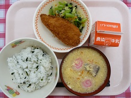 今日はかきたま汁が美味しく仕上がりましたフライもさっくり揚がっていて美味しかったです