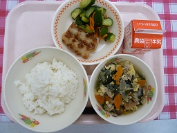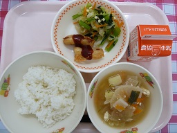 今日は、白ごはんにしそを混ぜたことで、いつもより残食が少なかったです