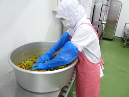 今日は、2年1組が「輪島塗給食」でしたじゃがいも、小松菜、油揚げのお味噌汁を盛り付けました