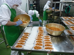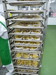 オーブンの温度調節や時間調整を確認しながら作りました予定通りに450人分を焼くことができて、みんなでホッとしました