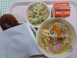 今日から3年生が修学旅行、2年生は金沢研修で1年生だけの給食です