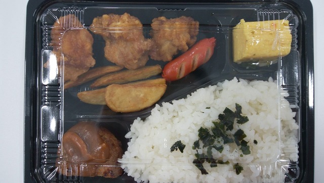 2、3年生はお弁当と、調理場で作ったサンラータン、牛乳です。
