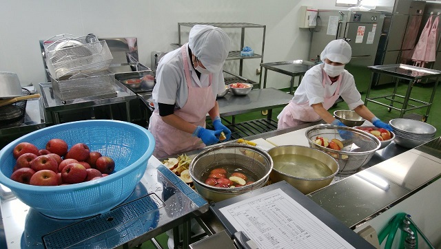 調理場が広くなった分、あえものや、加熱しないフルーツなど専用の作業スペースが、より衛生的に確保できるようになりました。