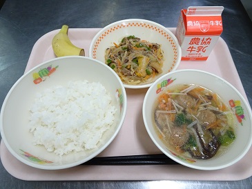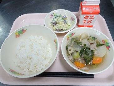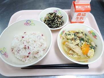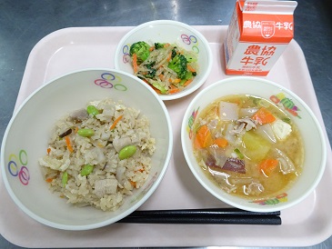 牛乳,五目ごはん,ごま和え,さつま汁,牛乳