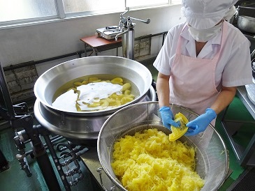 ★給食室で金糸瓜をほぐす様子★