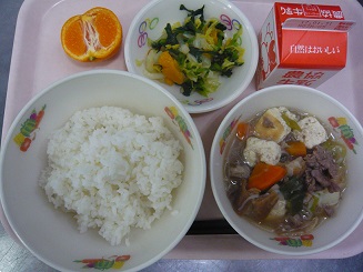 2017年1月30日 12時50分ごはん、麻婆豆腐、磯香和え、みかん、牛乳