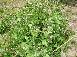 今日は輪島の春の味給食です。ワラビ、筍の入った混ぜ込みご飯です。味噌汁は今が旬のえんどうと天然ワカメです。学校の中庭の科学部の植えたえんどうも花盛りです。学校のえんどうです。