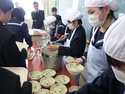 今日から平成28年度の給食が始まりました。中学校給食が始めての一年生も上手に36等分に配膳していました。成長期の食事は一生にひびきます。しっかりと食べましょう。