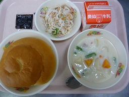 ミルクロール、クリームシチュー、カミカミサラダ、クリーム、牛乳