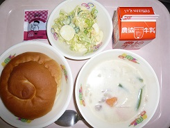 ミルクロール、クリームシチュー、卵サラダ、クリーム、牛乳