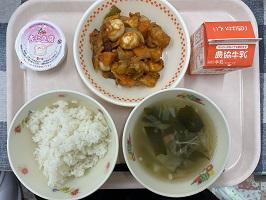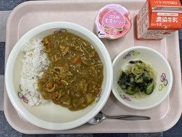 さっぱりとわかめの酢の物と、冷たいももゼリーです。