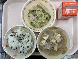 今日は、そうめんかぼちゃのごまず和え給食です。