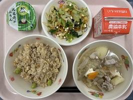 今日は、たけのこごはん給食です。