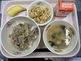 今日は、カレーそぼろ丼給食です。