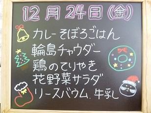 今日は2学期最後の給食でした。クリスマスイヴなので、給食でもクリスマスっぽいメニューにしてみました。
