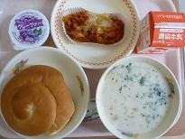 今日は人気メニューラザニア風でした野菜ポタージュもあさりのダシが効いて、美味しかったです