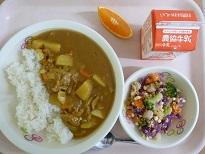 さいのめに切った大根、にんじん、色紙切りした紫キャベツ、ブロッコリー、ダイスチーズ、たまごそぼろをドレッシングで和えました