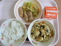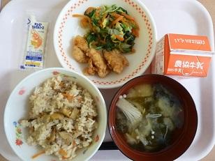 今日は今年度最後の「輪島ふぐ給食」で、たまごとじにしました