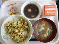 ぜんざいの小豆、大豆、きなこ、そぼろの中には大豆ミートミンチ、のっぺい汁には油揚げ・・豆類や豆加工品をたくさん使った節分給食でした