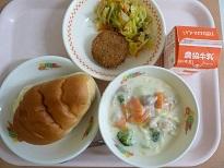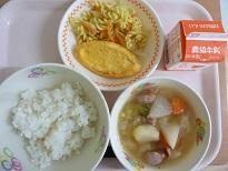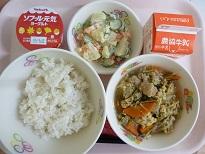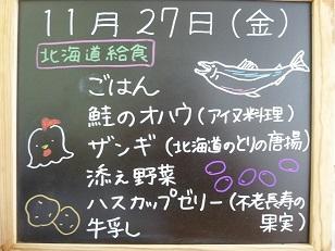 今日は給食で旅行気分を味わってもらいたいと思い、「北海道」給食にしました