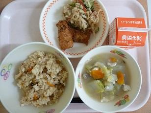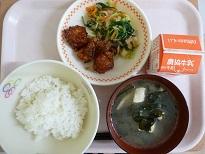 学校では、米粉、小麦粉、片栗粉を1:1:1の割合でブレンドして、衣をつけて揚げました。最後にしょうゆ、みりん、酢、さとう、ごま油、ねぎのみじん切りで作ったタレをかけて仕上げました。