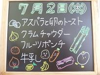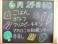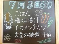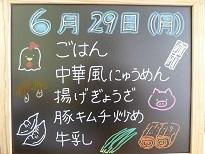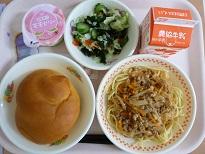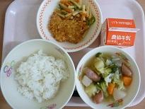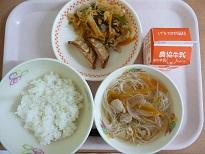 今日は、スタミナメニュー「豚キムチ」を出しました夏バテ防止にピッタリの豚肉、玉ねぎ、にらを使っています刺激的なピリ辛味に、中華風にゅうめんのやさしい味を合わせました。