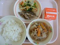 今日の豆あじは、まるごと食べられてカルシウムがたっぷりとれますよくかんで食べると骨も気になりません。時々出すようにしているので、ほとんど残さず食べています<゜)))彡