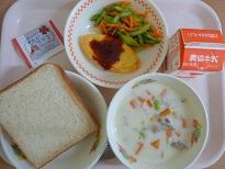 今日は、クリームスープに石川県産の豚肉を使用しています豚肉はビタミンB1が多く、不足すると疲れやだるさの原因になりますこれからの季節は特におすすめの食材です