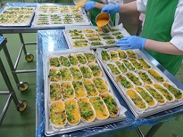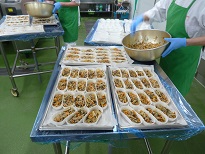 鶏むね肉はしょうが、りんご、うすくちしょうゆ、酒で下味をつけ、米粉と小麦粉を合わせた衣をつけて揚げます。