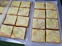 最後にパセリをふって、パン袋に入れて配食しました