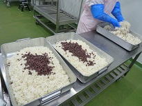 ~塩味で煮た小豆をごはんに混ぜます~