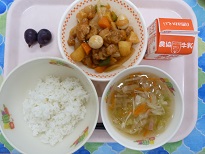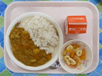 お昼は食べやすいものを、ということでカレーライスと冷たいゼリーあえにしました暑い中でしたが、みんながんばっていました。おつかれさまでした