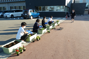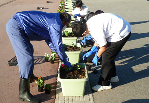 今日、サイエンス部員たちがパンジーへと植え替えました。
