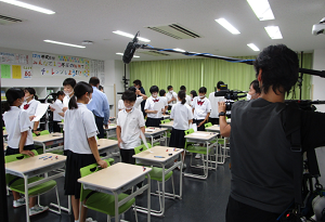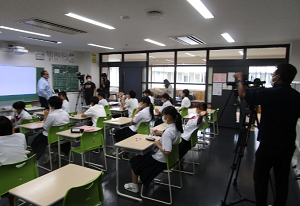 <テレビカメラに囲まれて授業>