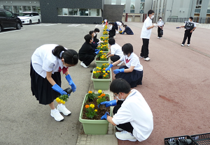 校務員さんとサイエンス部員の皆さんによって植えられました。