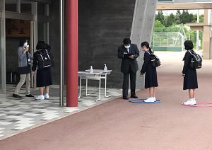 分散登校が始まり、今日は1年1・3組と3年生が登校しました。