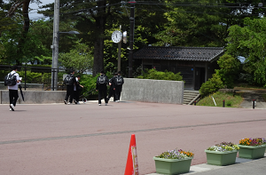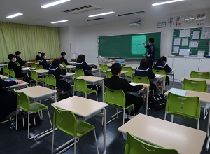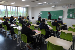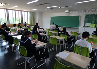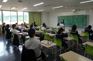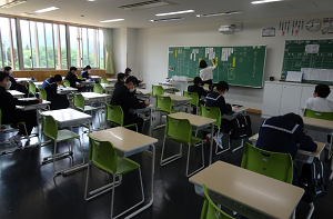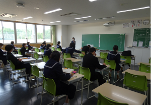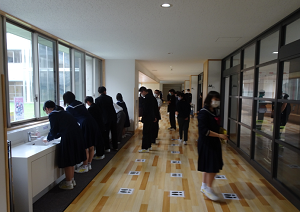 生徒も感染防止のため、いつもの接近した会話は控えていたようです。
