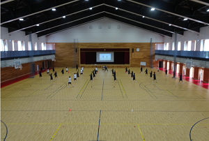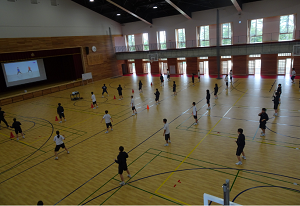 登校日が再開され、初めて「体を動かす運動」を行いました。