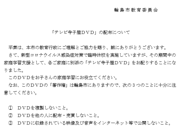 各ご家庭に「テレビ寺子屋DVD」が配布されました。
