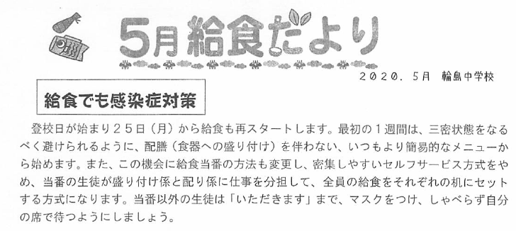 今週中に「新しい給食様式」をしっかり身に付けましょう。