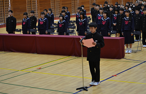 3年生で生徒会長の赤田桃果さんが歓迎の言葉を、