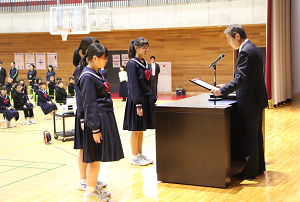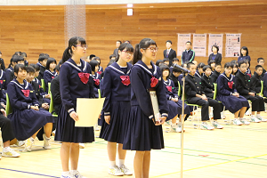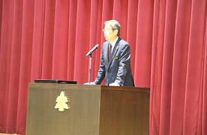 <宮坂教育長による生徒激励>