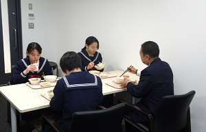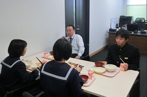 昼食時、校長室で生徒会活動に対する懇談を行いました。