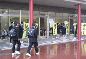 吹奏楽部1,2年親子による挨拶運動を行いました。