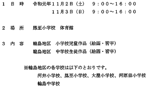 11月2~3日にかけて鳳至小学校体育館で開催される