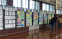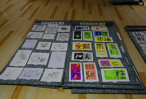 校区に児童生徒の習字や絵画が展示されました。