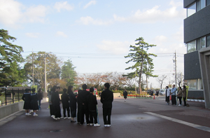 登校する生徒の気持ちも体も温めようと