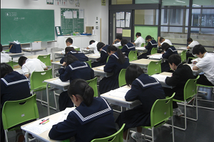 緊張した表情で受検していました。