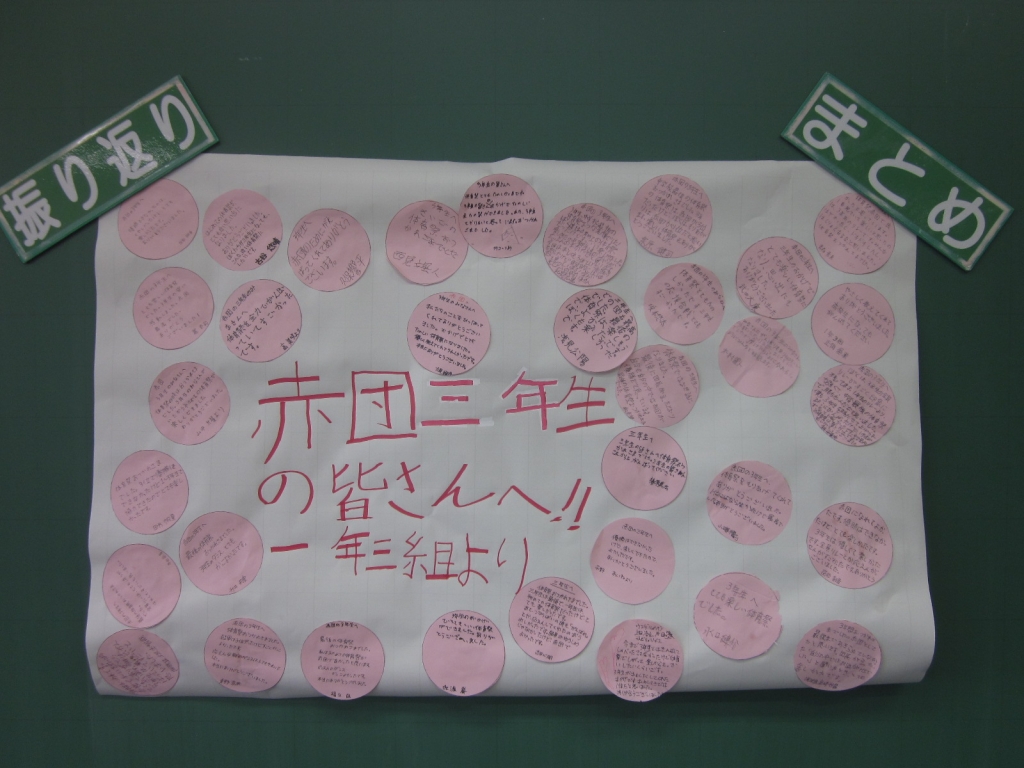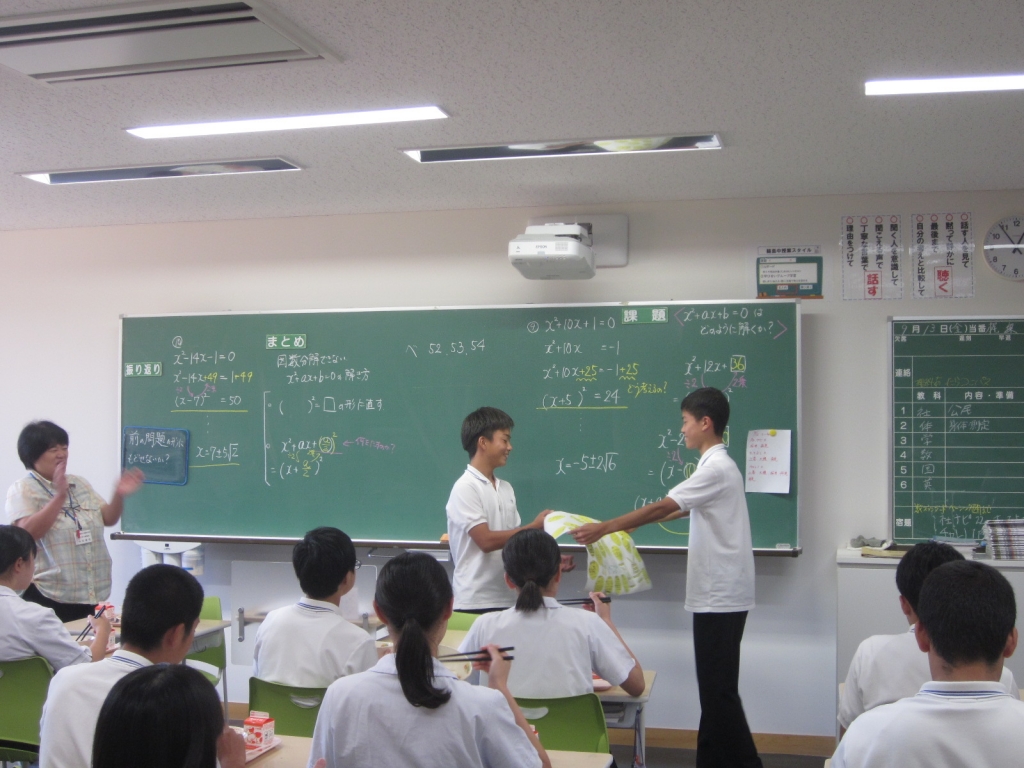 今日の給食の時間、1年生から3年生へ