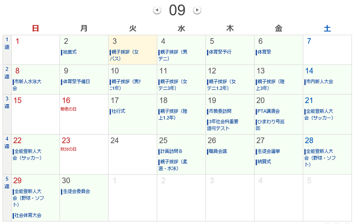 9月、10月の行事予定を更新しました。